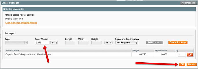 Check the product(s) that you would like to create a label for. Then click Add Selected Product(s) to Package: