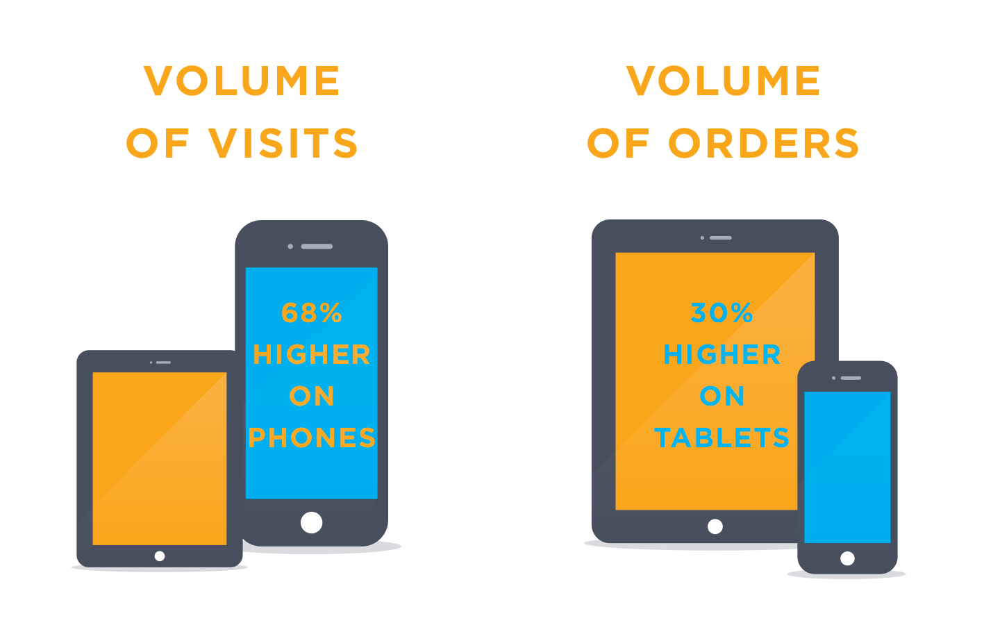 There’s no question that performance varies by mobile device category. As you see here, the volume of mobile phone visits is +68% higher than tablets, yet the number of orders from phones is -30% lower. Tablet traffic behaves more like desktop traffic. Google stated this loud & clear in July with the introduction of “Enhanced Campaigns” in AdWords, their PPC platform. Enhanced campaigns force us to lump tablet and desktop targeting together. We’re no longer able to segment them.